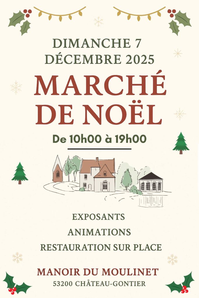• Lieu : Marché de Noël – Manoir du Moulinet – 53200 Château-Gontier-sur-Mayenne